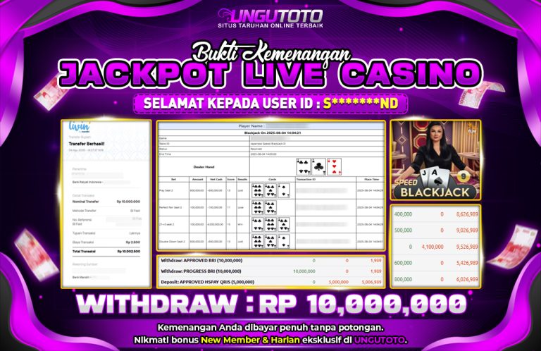 BUKTI WD TERBARU GAME : LIVE CASINO BLACKJACK DEPOSIT : 44,000.000.- WITHDRAW :  100.000.000.-   UNGUTOTO BANDAR JUDI TERPERCAYA BERIKUT PANDUAN CARA BERMAIN DENGAN AMAN Halo para penggemar judi online di Indonesia! Jika Anda sedang mencari bandar judi terpercaya UNGUTOTO menghadirkan pengalaman judi yang gacor  dan amanah, Anda telah datang ke tempat yang tepat. Pada…