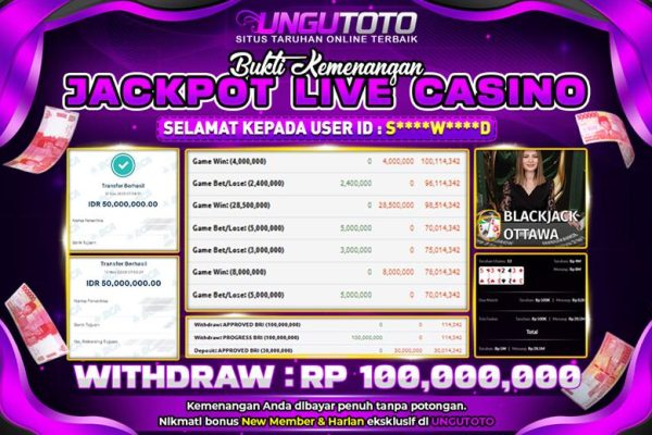 UNGUTOTO | BUKTI PEMENANG SLOT LIVE CASINO BLACKJACK OTTAWA TANGGAL 12 NOVEMBER 2025 RP. 100,000,000,. LUNAS