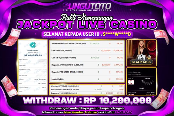 UNGUTOTO | BUKTI PEMENANG SLOT LIVE CASINO BLACKJACK TANGGAL 12 NOVEMBER 2025 RP. 10,200,000,. LUNAS