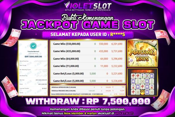 VIOLETSLOT | BUKTI PEMENANG SLOT PG SOFT – MAHJONG WAYS TANGGAL 22 OKTOBER 2025 RP. 7,500,000,. LUNAS