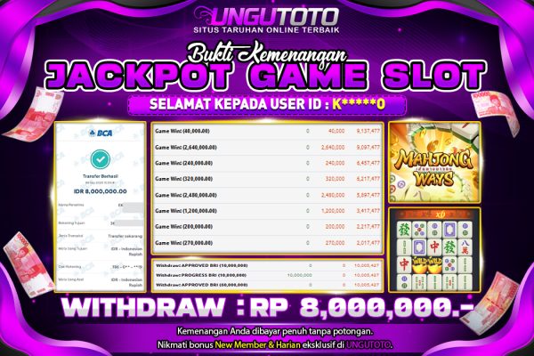 UNGUTOTO | BUKTI PEMENANG SLOT MAHJONG WAYS TANGGAL 08 NOVEMBER 2025 RP. 8,000,000,. LUNAS